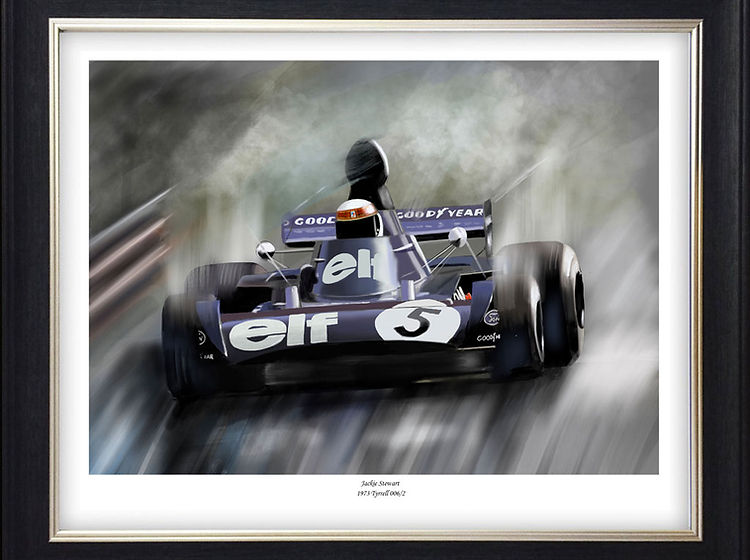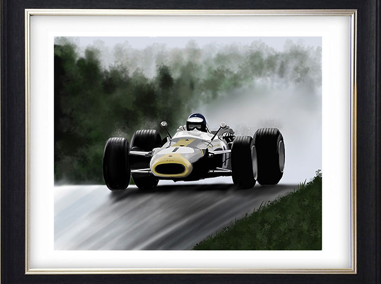 Formula one Gallery All giclee prints are limited editions of no more than 75 prints, numbered and signed by the artist. Super Swede Gilles The Maestro Dutch Delight A Brilliant win The Rain Master A New World Champion Italian duel Lotus Honda The Bear Rain dance Monaco Victory Red Five Ronnie Spa Domination Welsh Legend Lole James Ronnie’s last win
