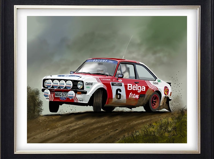 This Artwork depicts the Belgian Rally legend in a typical Escort RS sideways pose.